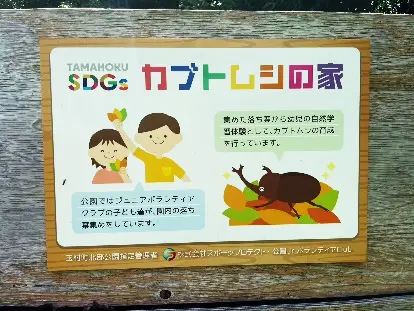 公園内の落葉を堆肥、腐葉土にする取り組み。また、集積所を設けてカブトムシを幼虫から育成し、子どもたちの学習機会も提供。