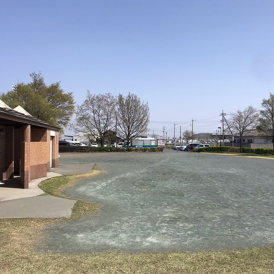 サッカー場トイレ前の砂地の広場です。サッカー大会時のアップなどでご利用いただいています。公園でのイベント時には臨時駐車場となる場合があります。